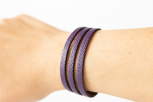 Leather Bracelet / Slim Wrap Cuff / Aubergine