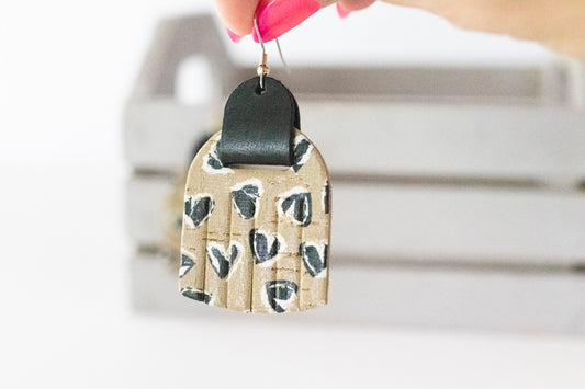 Leather Earrings / Demi Luna / Mocha Hearts Cork