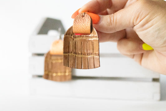 Leather Earrings / Fringies / Chocolate Croc & Frosted Ginger