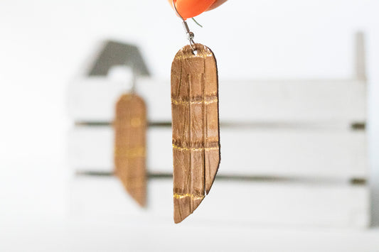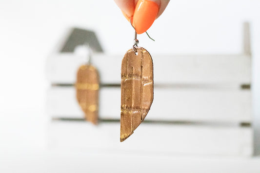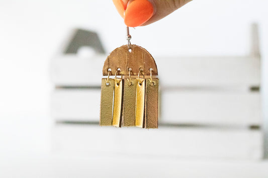Leather Earrings / Fringies / Chocolate Croc & Metallic Gold