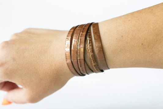 Leather Bracelet / Original Sliced Wrap Cuff / Chocolate Croc