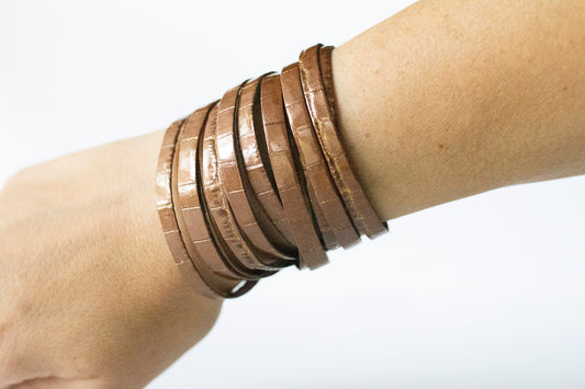 Leather Bracelet / Skinny Sliced Wrap Cuff / Chocolate Croc