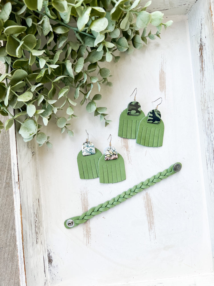 Leather Earrings / Fringies / Clover Green & Basic Blooms
