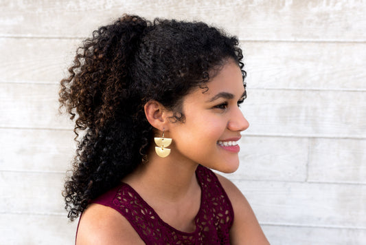 Leather Earrings / Demi Luna / Lemon Verbena Cork