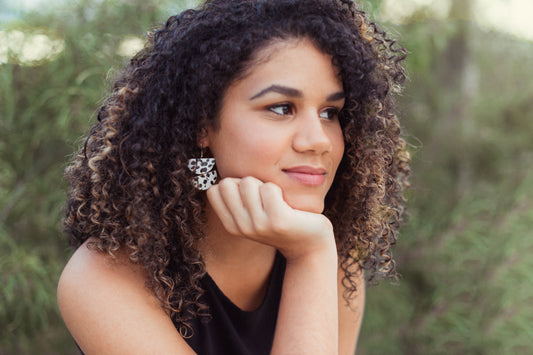 Leather Earrings / Demi Luna / Vintage Roses Cork