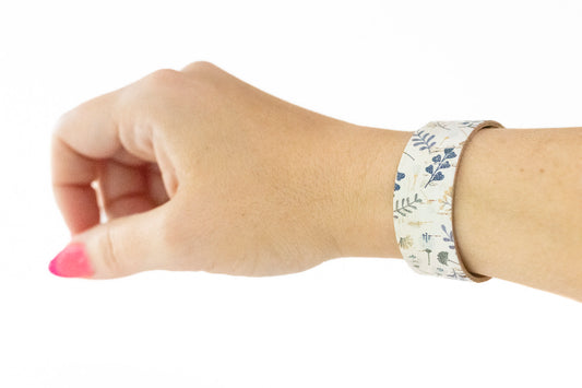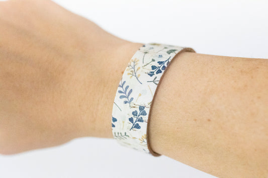 Leather Bracelet / Slim Cuff / Cottage Floral Cork