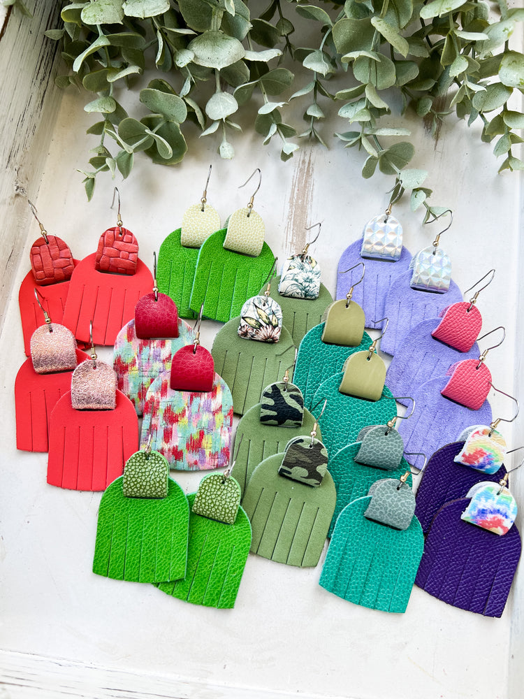 Leather Earrings / Fringies / Santa Fe Sunrise & Soft Copper