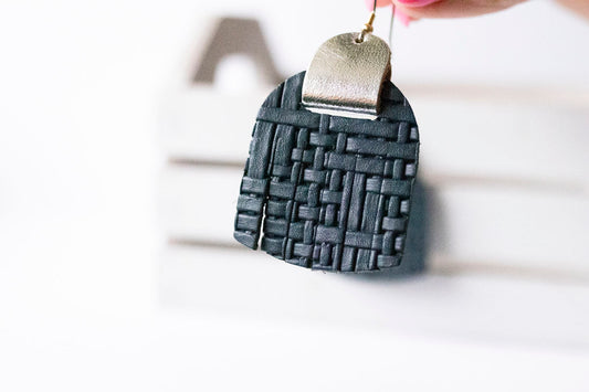 Leather Earrings / Fringies / Dark Navy Woven & Metallic Silver