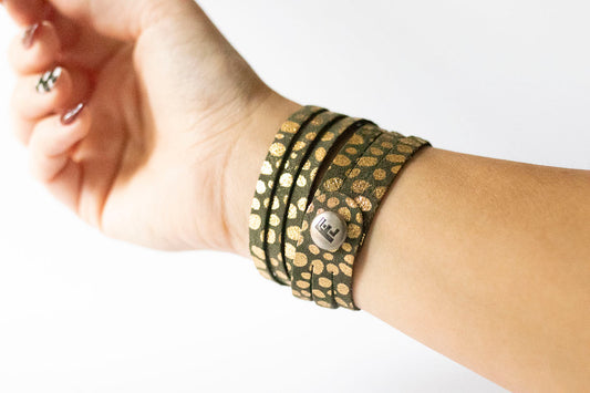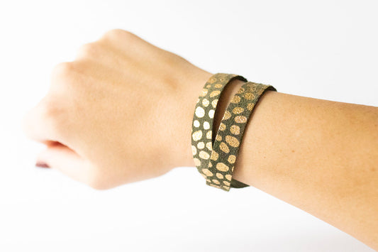 Leather Bracelet / Slim Wrap Cuff / Golden Fern