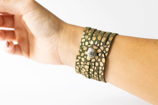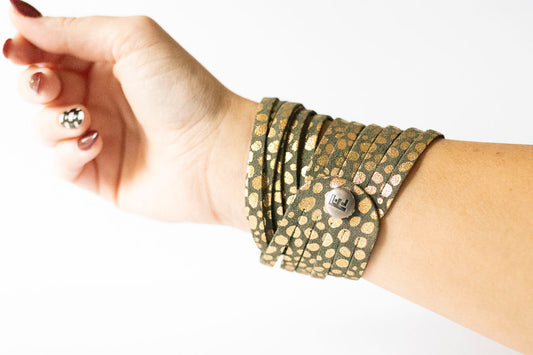 Leather Bracelet / Original Sliced Wrap Cuff / Golden Fern