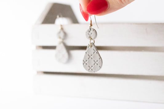 Leather Earrings / Fringies / Gray Day & Lemon Seltzer