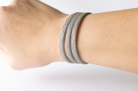 Leather Bracelet / Ultra Skinny Sliced Cuff / Gray Day