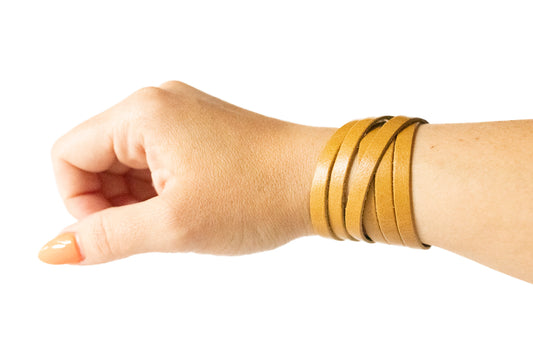 Leather Bracelet / Original Sliced Wrap Cuff / Honey