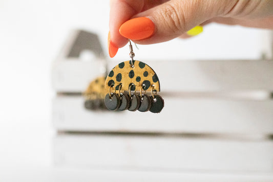 Leather Earrings / Isabella / Golden Cheetah Cork
