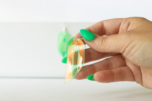 Leather Earrings / Fringe / Honeycomb Prism Jelly