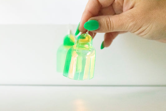 Leather Earrings / Mini Fringe / Lime Jelly