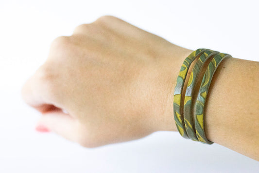 Leather Bracelet / Slim Wrap Cuff / Jungle Floor
