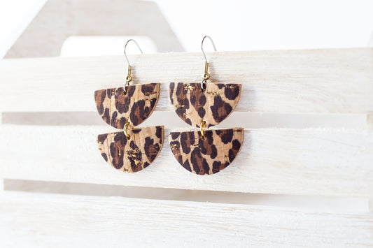 Leather Earrings / Demi Luna / Leopard Cork
