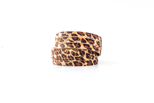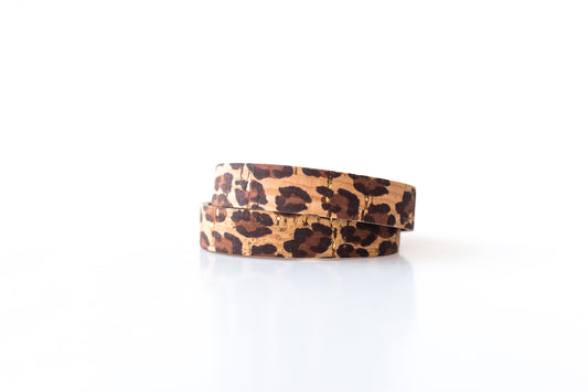 Leather Bracelet / Slim Wrap Cuff / Leopard Cork