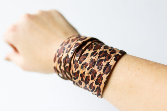 Leather Bracelet / Original Sliced Wrap Cuff / Leopard Cork