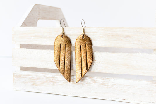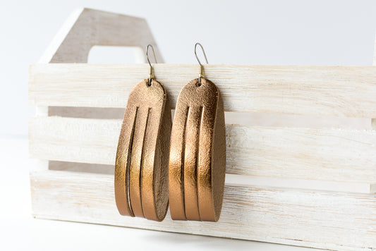 Leather Earrings / Sliced Leather / Metallic Bronze