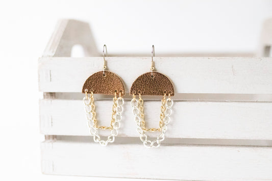 Leather Earrings / Chain Drop / Metallic Bronze