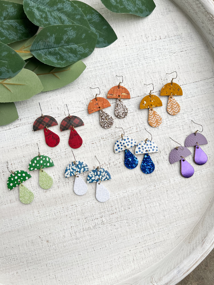 Leather Earrings / Mushrooms / Taro Milk Tea