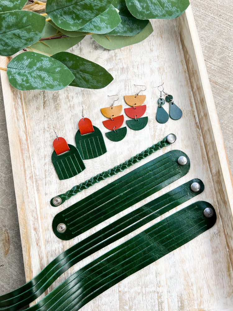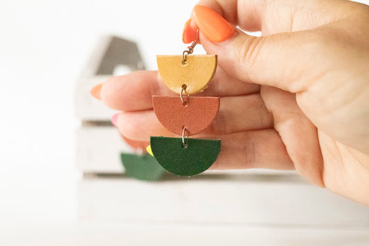 Leather Earrings / Fringies / Pine Tree & Autumn Fire