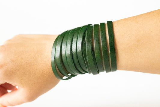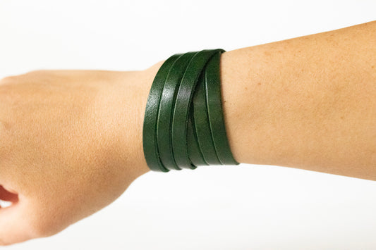 Leather Bracelet / Original Sliced Wrap Cuff / Pine Tree