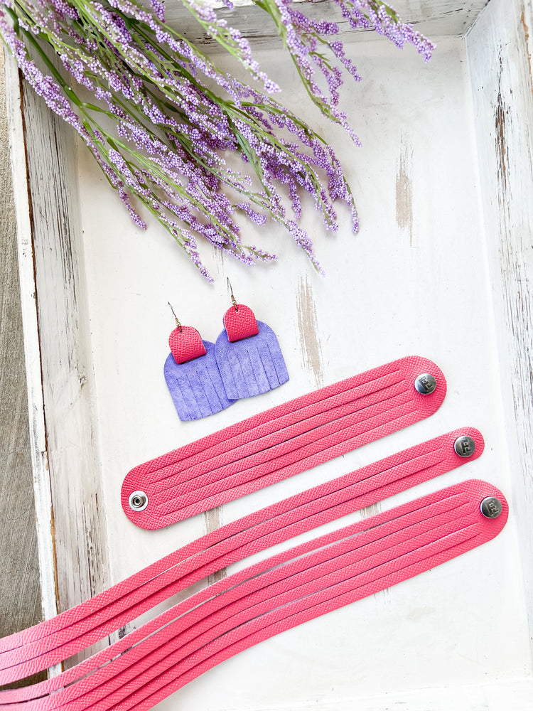 Leather Bracelet / Original Sliced Cuff / Pink Cherries
