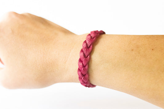 Braided Leather Bracelet / Raspberry