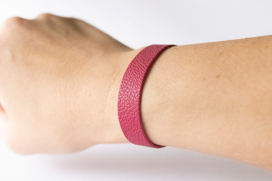 Leather Bracelet / Skinny Slim Cuff / Raspberry