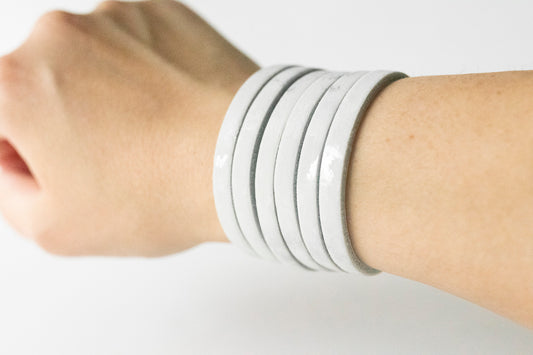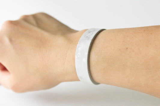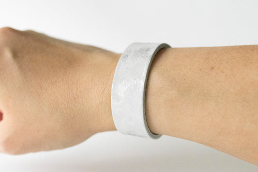 Leather Bracelet / Original Sliced Cuff / Silver Clouds