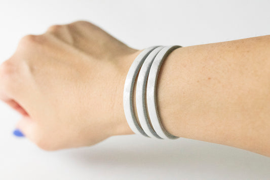 Leather Bracelet / Ultra Skinny Sliced Cuff / Silver Clouds