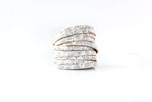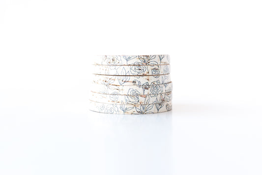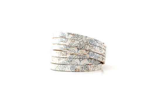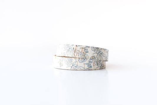 Meet Simple Roses Cork, a white cork design backed with leather and adorned with delicate floral outlines. Light and dainty, it has a quiet kind of beauty.