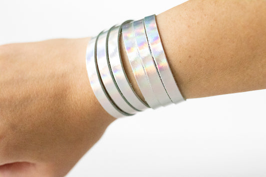 Leather Bracelet / Skinny Sliced Wrap Cuff / Rainbowy