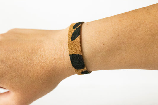 Leather Bracelet / Skinny Slim Cuff / Tan Leopard Suede