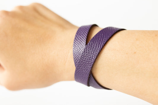 Leather Bracelet / Slim Wrap Cuff / Aubergine