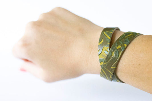Leather Bracelet / Slim Wrap Cuff / Jungle Floor