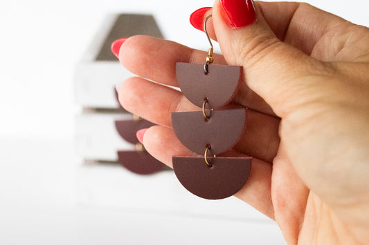 Leather Earrings / Tri Luna / Smooth Sangria