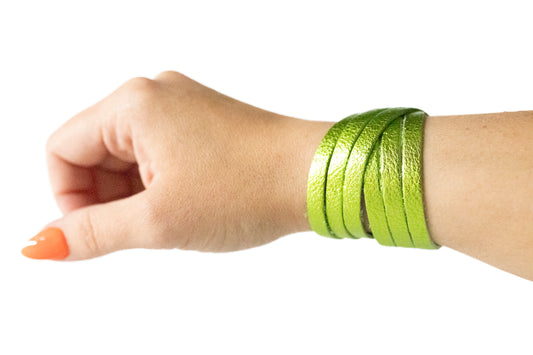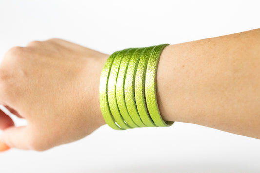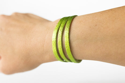 Leather Bracelet / Original Sliced Wrap Cuff / Soft Lime