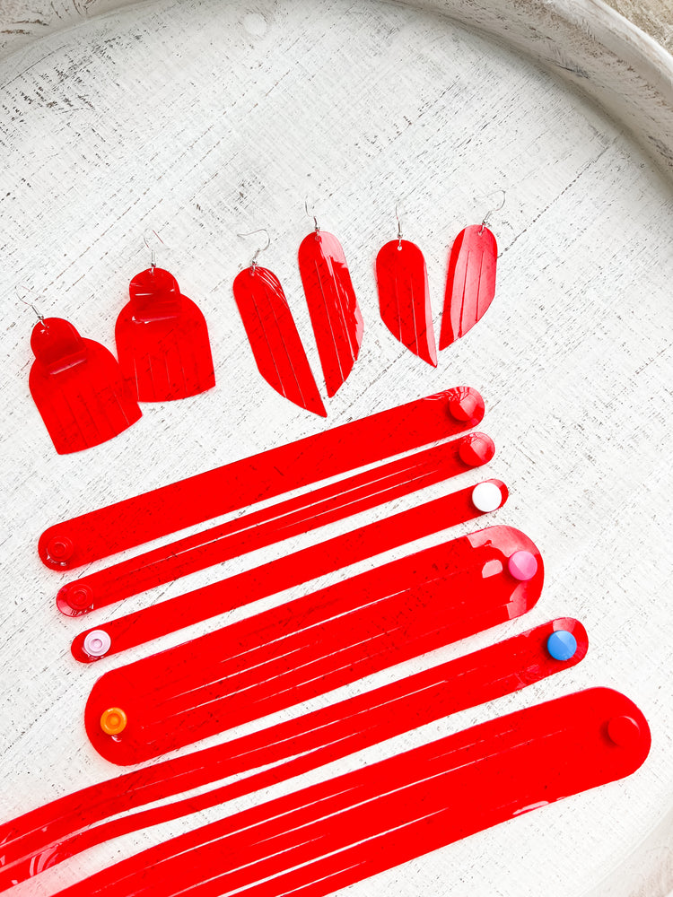 Leather Earrings / Mini Fringe / Strawberry Jelly