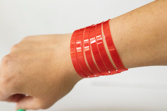 Leather Bracelet / Ultra Skinny Sliced Cuff / Strawberry Jelly
