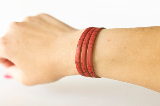 Leather Bracelet / Skinny Slim Cuff / Strawberry Red Cork