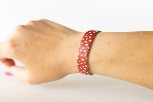 Leather Bracelet / Skinny Slim Cuff / Strawberry Red Cork