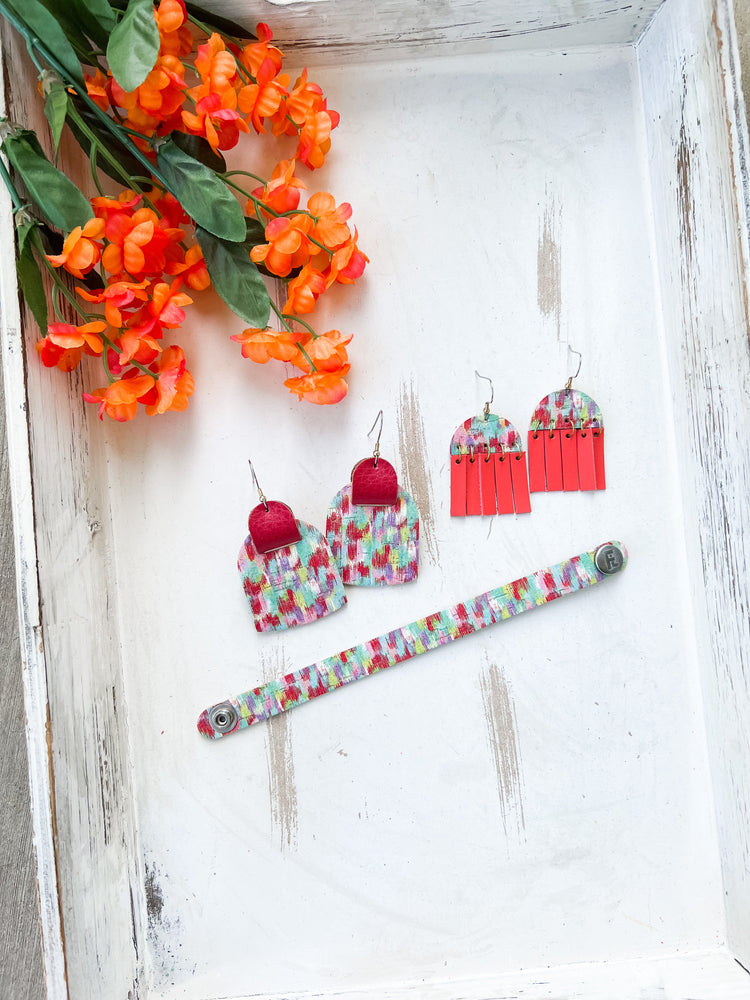 Leather Earrings / Fringies / Summer Brushstroke Cork & Apple Red