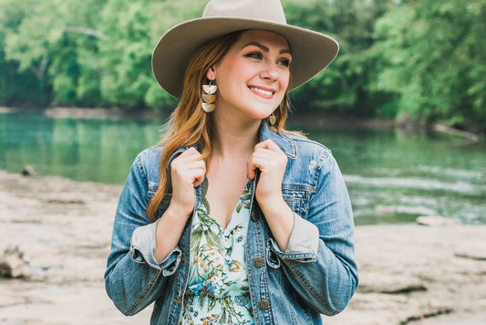 Leather Earrings / Tri Luna / Summer Graffiti Cork