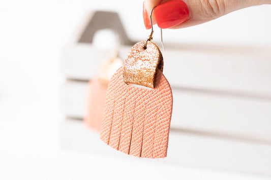 Leather Earrings / Fringies / Summer Peach & Copper Penny