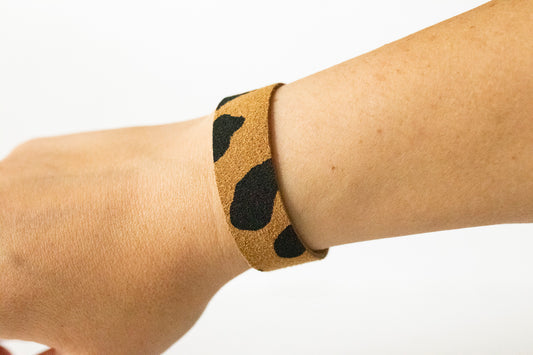 Leather Bracelet / Original Sliced Cuff / Tan Leopard Suede