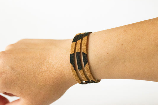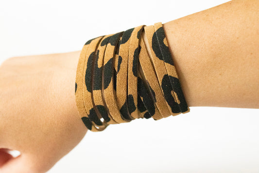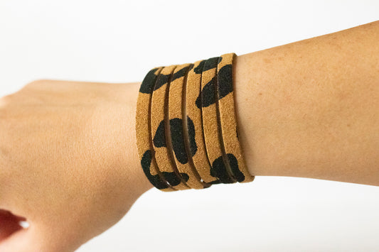 Leather Bracelet / Original Sliced Wrap Cuff / Tan Leopard Suede